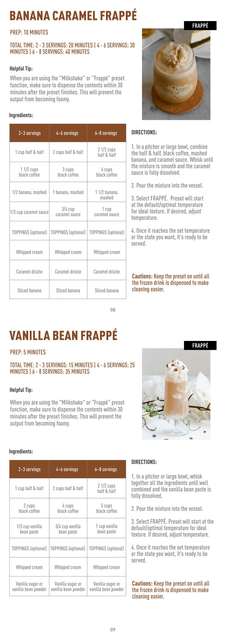 无需冰块:雪沙机采用新快速冷冻技术,消除了对冰块的需求。冷冻饮品最快可在15分钟内准备好。*准备时间根据材料和起始温度在15到45分钟之间。
